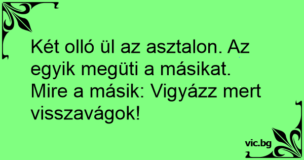Két olló ül az asztalon. Az egyik megüti a másikat.