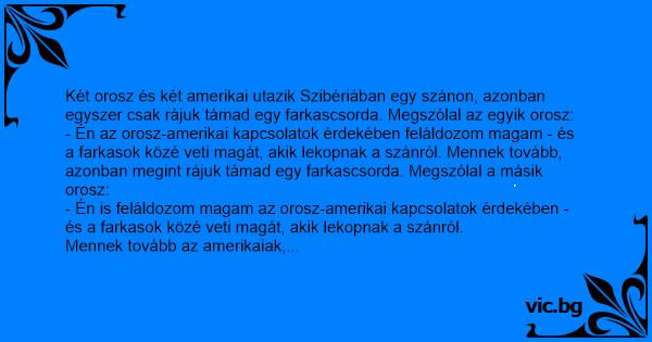 - Én az orosz-amerikai kapcsolatok érdekében feláldozom magam - és a farkasok közé veti magát, akik lekopnak a szánról. Mennek tovább, azonban megint rájuk támad egy farkascsorda. Megszólal a másik orosz: