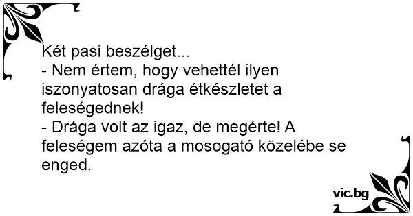 - Nem értem, hogy vehettél ilyen iszonyatosan drága étkészletet a feleségednek!