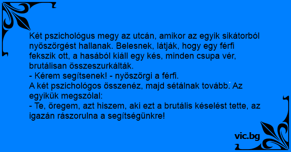 A két pszichológos összenéz, majd sétálnak tovább. Az egyikük megszólal: