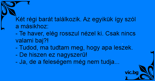 Két régi barát találkozik. Az egyikük így szól a másikhoz:
