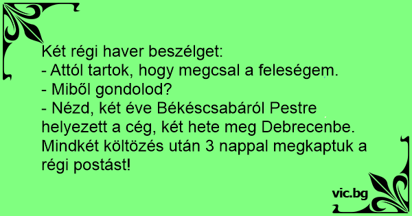 - Nézd, két éve Békéscsabáról Pestre helyezett a cég, két hete meg Debrecenbe. Mindkét költözés után 3 nappal megkaptuk a régi postást!