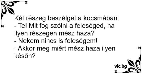 - Te! Mit fog szólni a feleséged, ha ilyen részegen mész haza?