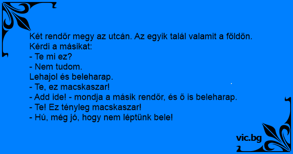 Két rendőr megy az utcán. Az egyik talál valamit a földön.