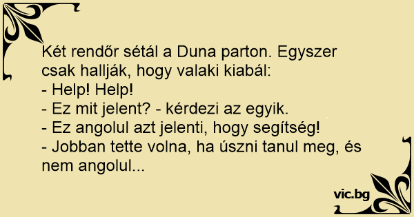 Két rendőr sétál a Duna parton. Egyszer csak hallják, hogy valaki kiabál:
