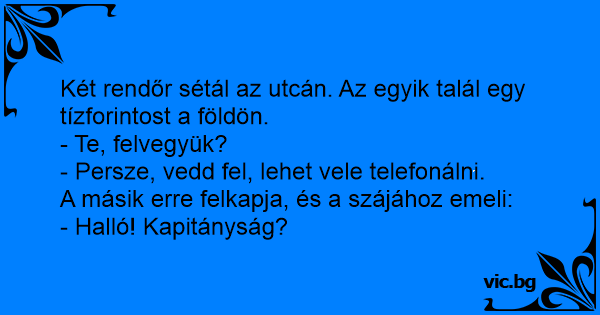 Két rendőr sétál az utcán. Az egyik talál egy tízforintost a földön.
