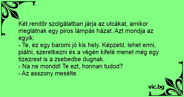 Két rendőr szolgálatban járja az utcákat, amikor meglátnak egy piros lámpás házat. Azt mondja az egyik: