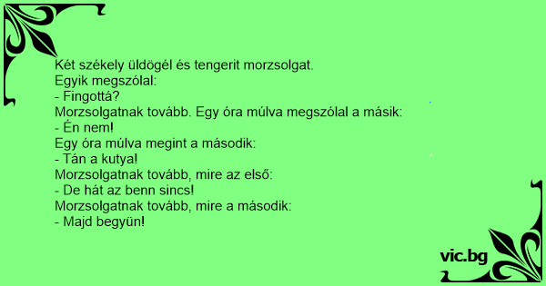 Morzsolgatnak tovább. Egy óra múlva megszólal a másik: