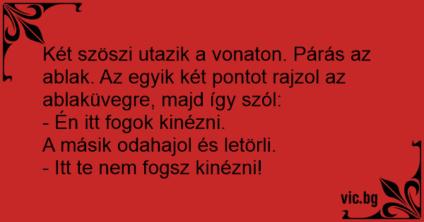 Két szöszi utazik a vonaton. Párás az ablak. Az egyik két pontot rajzol az ablaküvegre, majd így szól: