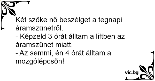 - Képzeld 3 órát álltam a liftben az áramszünet miatt.