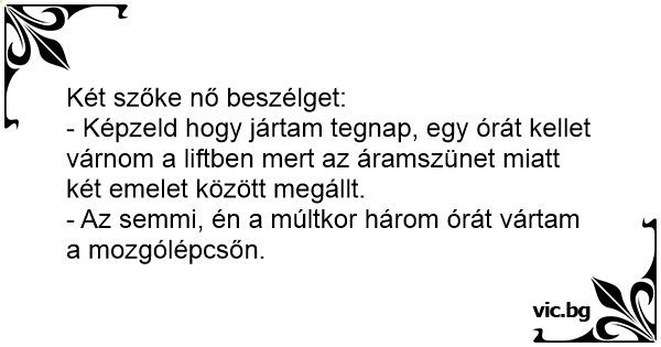 - Képzeld hogy jártam tegnap, egy órát kellet várnom a liftben mert az áramszünet miatt két emelet között megállt.