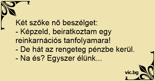 - Képzeld, beiratkoztam egy reinkarnációs tanfolyamara!