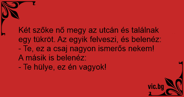 Két szőke nő megy az utcán és találnak egy tükröt. Az egyik felveszi, és belenéz: