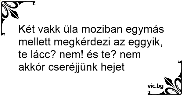 Két vakk üla moziban egymás mellett megkérdezi az eggyik, te lácc? nem! és te? nem akkór cseréjjünk hejet