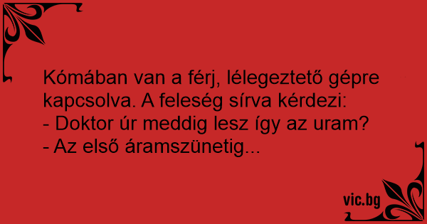 Kómában van a férj, lélegeztető gépre kapcsolva. A feleség sírva kérdezi: