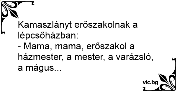 - Mama, mama, erőszakol a házmester, a mester, a varázsló, a mágus...