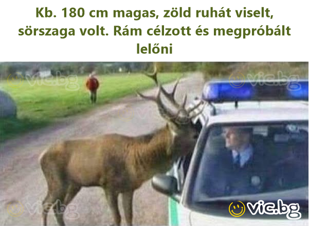 Беше около 180 см висок, облечен в зелени дрехи, миришеше на бира. Насочи се към мен и опита да ме застреля Тој е околу 180 см висок, облечен во зелена облека, мирисаше на пиво. Се насочи кон мене и се обиде да ме застрела He is about 180 cm tall, dressed in green clothes, smelled of вееr. Aimed at me and tried to shoot me Mide unos 180 cm, vestido de verde, olía a cerveza. Me apuntó y trató de dispararme Он около 180 см ростом, одет в зелёную одежду, пах пивом. Прицелился в меня и попытался выстрелить Er ist etwa 180 cm groß, trug grüne Kleidung, roch nach Bier. Zielte auf mich und versuchte, mich zu erschießen Il mesure environ 1m80, vêtu de vert, il sentait la bière. Il m’a visé et a essayé de me tirer dessus Έχει ύψος περίπου 1,80, ντυμένος με πράσινα ρούχα, μύριζε μπύρα. Σημάδεψε εμένα και προσπάθησε να με πυροβολήσει È alto circa 1,80 m, vestito di verde, odorava di birra. Ha mirato a me e ha cercato di spararmi Yaklaşık 180 cm boyunda, yeşil giysiler giymiş, bira kokuyordu. Bana nişan aldı ve ateş etmeye çalıştı Він близько 180 см зростом, одягнений у зелене, від нього тхнуло пивом. Прицілився в мене і спробував стріляти Tem cerca de 1,80 m, vestido de verde, cheirava a cerveja. Apontou para mim e tentou disparar Ma około 180 cm wzrostu, ubrany na zielono, pachniał piwem. Wycelował we mnie i próbował strzelić Han är cirka 180 cm lång, klädd i gröna kläder, luktade öl. Siktade på mig och försökte skjuta mig Hij is ongeveer 1,80 m lang, gekleed in groene kleren, rook naar bier. Richtte op mij en probeerde me neer te schieten Han er ca. 180 cm høj, iført grønt tøj, lugtede af øl. Sigtede på mig og forsøgte at skyde mig Han er ca. 180 cm høy, kledd i grønne klær, luktet øl. Siktet på meg og prøvde å skyte meg Hän on noin 180 cm pitkä, pukeutunut vihreisiin vaatteisiin, haistoi oluelle. Hän tähtäsi minuun ja yritti ampua Are cam 1,80 m, îmbrăcat în verde, mirosea a bere. A țintit spre mine și a încercat să tragă Je asi 180 cm vysoký, oblečený v zeleném, cítil pivo. Zamířil na mě a pokusil se vystřelit Jis apie 180 cm ūgio, vilkėjo žalius drabužius, dvokė alumi. Nukreipė į mane ir bandė šauti Viņš ir apmēram 180 cm garš, ģērbies zaļās drēbēs, smaržoja pēc alus. Mērķēja uz mani un mēģināja nošaut Visok je oko 180 cm, u zelenoj odjeći, mirisao na pivo. Nanišanio na mene i pokušao me upucati