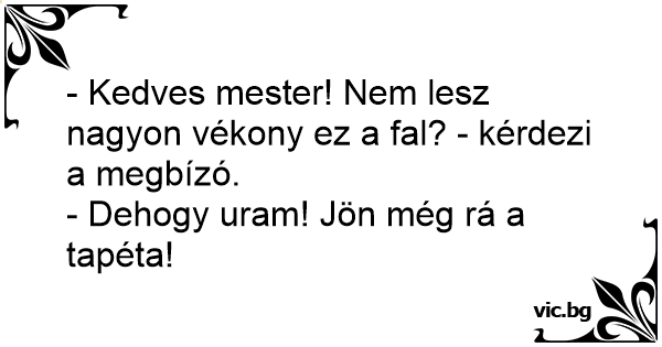 - Kedves mester! Nem lesz nagyon vékony ez a fal? - kérdezi a megbízó.