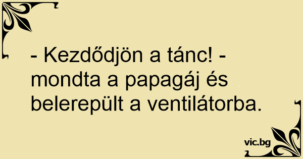 - Kezdődjön a tánc! - mondta a papagáj és belerepült a ventilátorba.