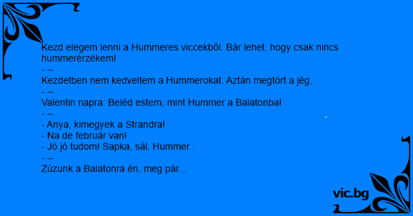 Kezd elegem lenni a Hummeres viccekből. Bár lehet, hogy csak nincs hummerérzékem!