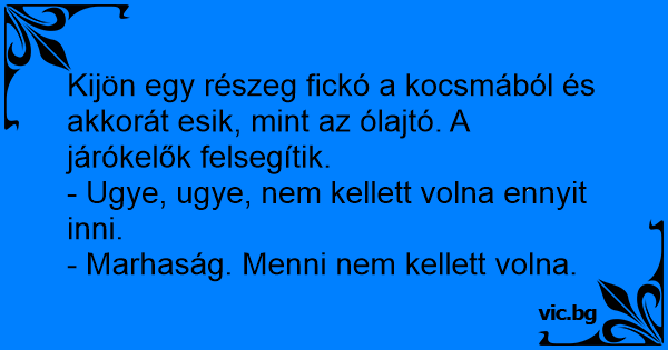 Kijön egy részeg fickó a kocsmából és akkorát esik, mint az ólajtó. A járókelők felsegítik.