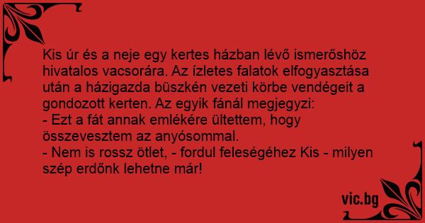 - Nem is rossz ötlet, - fordul feleségéhez Kis - milyen szép erdőnk lehetne már!