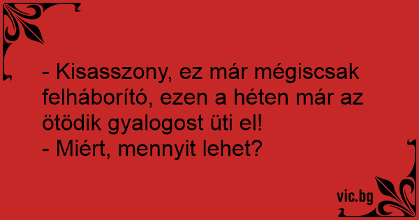 - Kisasszony, ez már mégiscsak felháborító, ezen a héten már az ötödik gyalogost üti el!