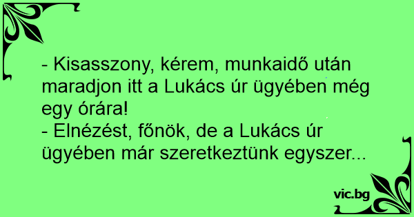 - Kisasszony, kérem, munkaidő után maradjon itt a Lukács úr ügyében még egy órára!