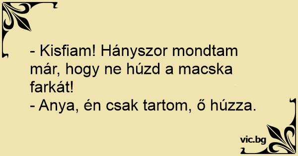 - Kisfiam! Hányszor mondtam már, hogy ne húzd a macska farkát!