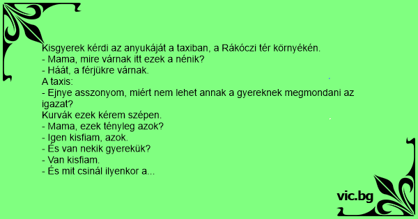 Kisgyerek kérdi az anyukáját a taxiban, a Rákóczi tér környékén.