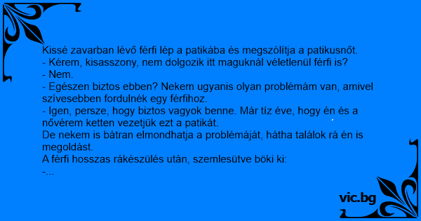 - Hát tudja, kisasszony, nem múlik az erekcióm. Állandósult. Tudnak ajánlani valamit?