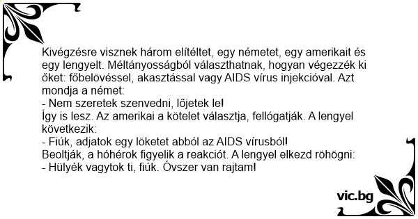 - Fiúk, adjatok egy löketet abból az AIDS vírusból!