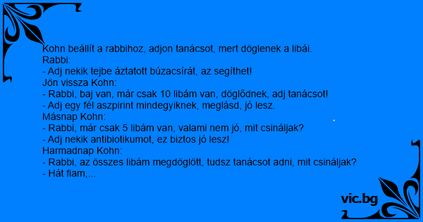 Kohn beállít a rabbihoz, adjon tanácsot, mert döglenek a libái.