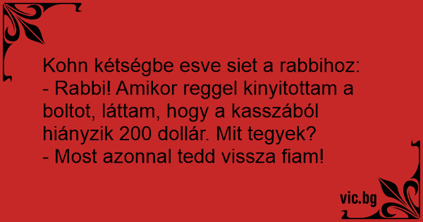 - Rabbi! Amikor reggel kinyitottam a boltot, láttam, hogy a kasszából hiányzik 200 dollár. Mit tegyek?