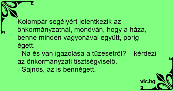 Kolompár segélyért jelentkezik az önkormányzatnál, mondván, hogy a háza, benne minden vagyonával együtt, porig égett.