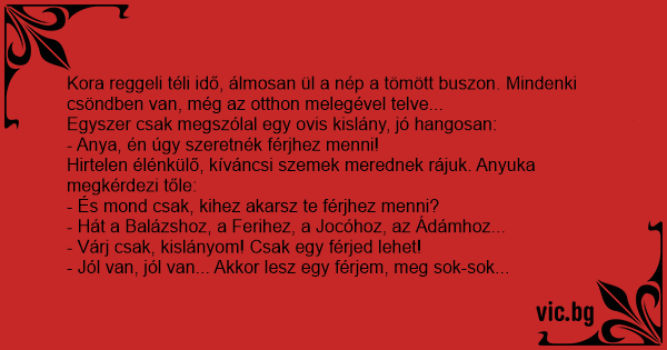 Kora reggeli téli idő, álmosan ül a nép a tömött buszon. Mindenki csöndben van, még az otthon melegével telve...