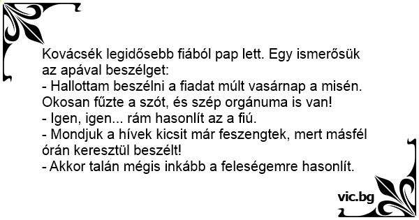 Kovácsék legidősebb fiából pap lett. Egy ismerősük az apával beszélget: