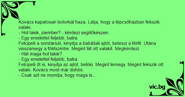 - Csak azt ne mondja, hogy maga is egy emelettel feljebb, balra lakik!
