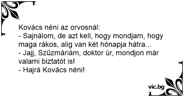 - Jajj, Szűzmáriám, doktor úr, mondjon már valami biztatót is!