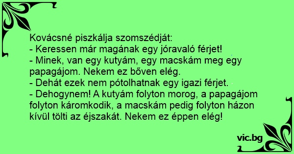 - Minek, van egy kutyám, egy macskám meg egy papagájom. Nekem ez bőven elég.