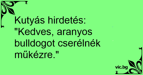 "Kedves, aranyos bulldogot cserélnék műkézre."