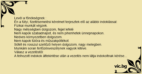Én a fütyi, fizetésemelési kérelmet terjesztek elő az alábbi indoklással: