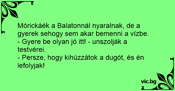 Mórickáék a Balatonnál nyaralnak, de a gyerek sehogy sem akar bemenni a vízbe.