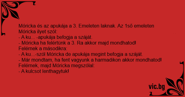Móricka és az apukája a 3. Emeleten laknak. Az 1ső emeleten Móricka ilyet szól: