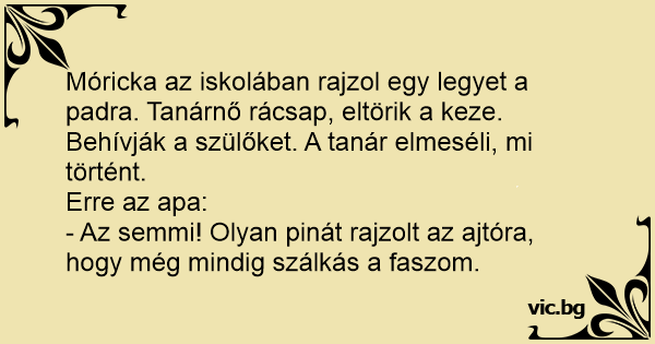 - Az semmi! Olyan pinát rajzolt az ajtóra, hogy még mindig szálkás a faszom.