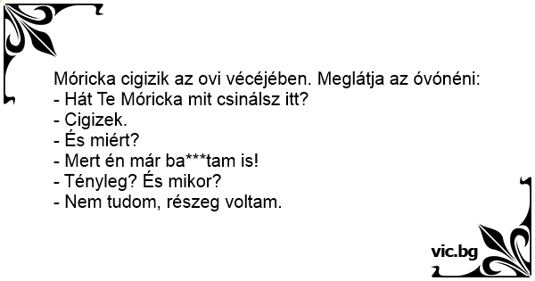 Móricka cigizik az ovi vécéjében. Meglátja az óvónéni: