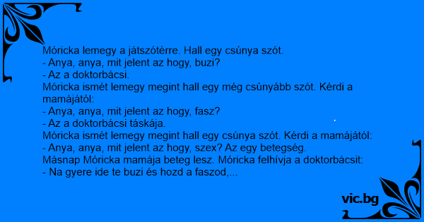 Móricka lemegy a játszótérre. Hall egy csúnya szót.