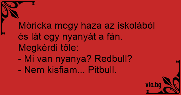Móricka megy haza az iskolából és lát egy nyanyát a fán. Megkérdi tőle:
