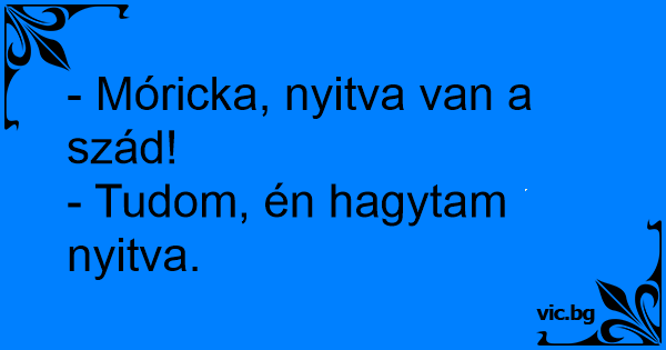 - Móricka, nyitva van a...