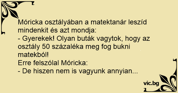 - Gyerekek! Olyan buták vagytok, hogy az osztály 50 százaléka meg fog bukni matekból!